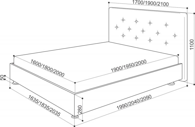 В первую очередь определимся с длиной. Типовой можно считать самую распространенную длину кровати – 200 см. Ложе такого размера подойдет почти любому человеку. Оно может быть уменьшено, если человек небольшого роста испытывает дискомфорт во время сна.