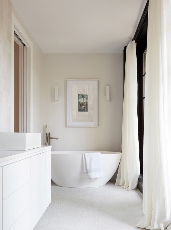 Дизайнеры восстановили кирпичный фасад дома, чтобы он соответствовал эстетике его окрестностей на Евклид-стрит (итальянского района в Торонто). Белые стены и полы, покрытые широкими досками из белого дуба, создают нейтральный и универсальный фон для декора. На нем обыгрываются нескучные сочетания исторически сохранившихся деревянных балок, элементов из черной стали, оконных рам в индустриальном стиле и декоративных каминов. Для большинства акцентов дизайнеры выбрали оттенки белого и бежевого.