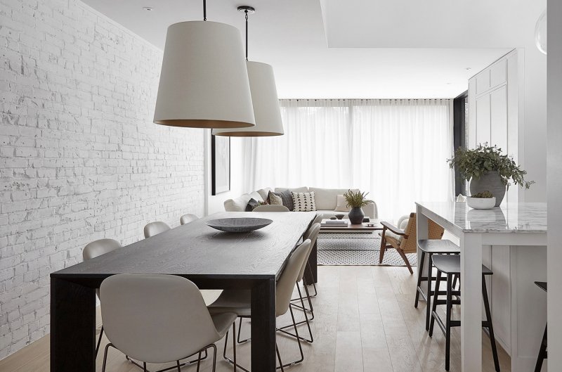 В отреставрированном доме в Торонто канадская фирма Ancerl Studio объединила кирпичные стены, выкрашенные в белый цвет, выветрившиеся деревянные балки и черные стальные окна. Отель напоминает здание начала 20-го века с историческими элементами, просторными помещениями для развлечения гостей и яркими, современными интерьерами. Кухня и столовая расположены на двух уровнях в середине первого этажа. Основной из них полностью открыт. Он разделен на гостиную и жилую комнату со стеклянными дверями, которые открываются на палубу и задний двор.