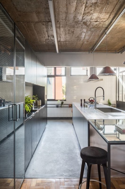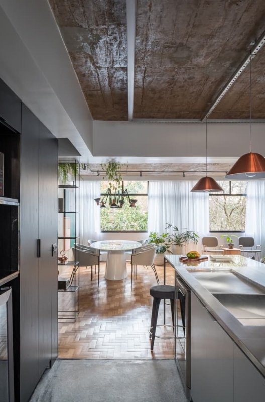 Главные пожелания заказчиков – гибкое, интегрированное пространство с центральной кухней и акцент на характерные черты бразильской столицы с межкультурной эклектикой. Идеальный «привкус» своего будущего интерьера владельцы квартиры определили как «умами» - шестой вкус, усиливающий действие других вкусов, известных нашим рецепторам, и способствующий их гармоничному единению. Роль умами в планировке сыграла кухня, объединившая вокруг себя все остальные помещения апартаментов. Дизайнеры соединили гостиную и кухню, добавив помещениям простора, воздуха и естественного света.