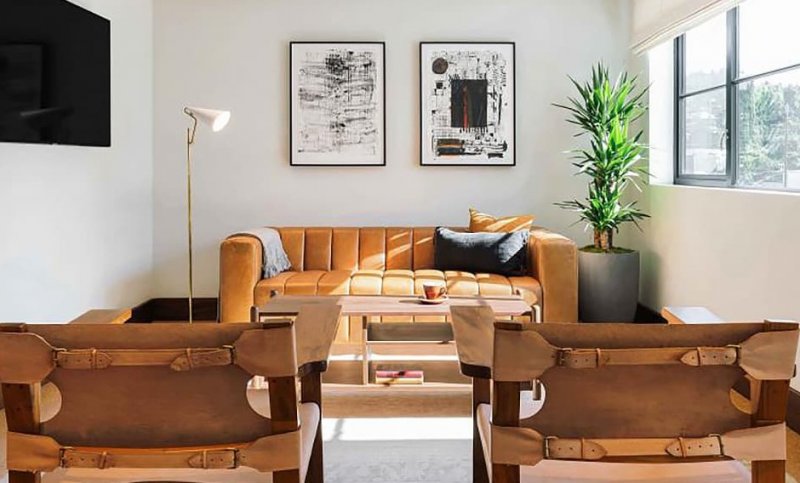 На восточном побережье Лос-Анджелеса открылся отель независимого гостиничного бренда Palisociety. Студия дизайна Electric Bowery преобразовала здание мотеля 1980-х годов в городской оазис. В нем 54 номера, оформленные в южно-калифорнийском стиле, в духе Мехико-Сити и Палм-Спрингс.Результат работы дизайнеров Люсии Варфоломей и Кейли Ламбур – светлые и яркие интерьеры, в отделке преобладают дерево, кожа, натуральный текстиль, марокканская и итальянская плитка ручной работы.