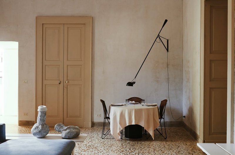 На ежегодной премии AHEAD Awards звания лучшего отеля удостоился Palazzo Daniele, расположенный на итальянском полуострове Саленто. Его неоклассическое здание, построенное в 1861 году, реконструировали архитекторы Роберто Паломба и Людовика Серафини. Они изменили планировку, превратив жилые помещения на первом этаже в просторные галереи современного искусства. При этом исторические декоративные фрески и мозаичные полы были сохранены и восстановлены. На фоне нейтральных стен портреты старых семей органично сочетаются с современными полотнами и арт-объектами.