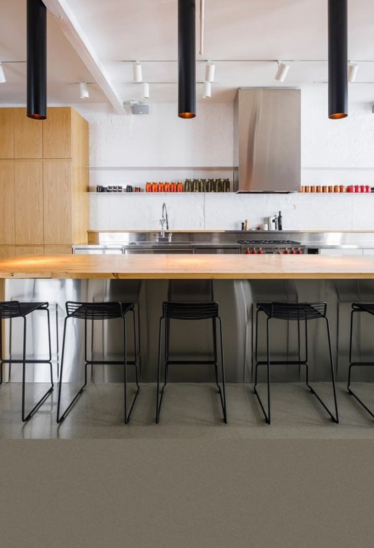 Помещение бывшего склада обувной фабрики канадская студия La Firme превратила в комфортную квартиру с просторным лофтовым интерьером. Дизайнеры постарались сохранить исторический облик дома, построенного в 1895-м году, и индустриальный характер комнат с помощью текстур исходных материалов. Пол покрыт полированной бетонной плитой с подогревом. Кирпичные стены, трубы и деревянные потолочные балки остались не тронутыми.