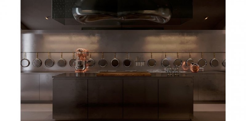 «Кухню решили сделать профессиональной — приготовление может стать новым замечательным хобби. В любом случае бывать здесь будут часто. И вообще, считаю, что нержавеющая сталь для кухонных поверхностей — это отличное решение не только для ресторанов, но и для жилых помещений», — отмечает соавтор проекта, дизайнер Александр Махно.