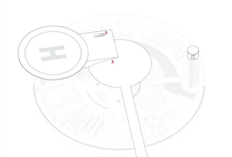 Проектное предложение предусматривает комфортное проживание двух-трех семей с детьми и обслуживающего персонала с семьями. При необходимости проект можно перепланировать для значительно большего числа людей, но на этом этапе архитекторам было интересно поэкспериментировать с пространством под землей таким образом, чтобы создать иллюзию пребывания над земной поверхностью — будто можно выглянуть в окно и увидеть там синее небо.