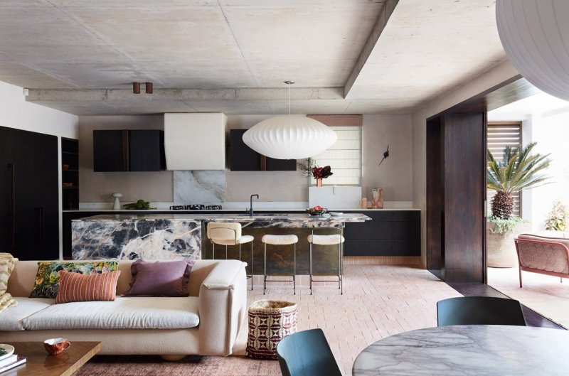 Дом площадью 825 квадратных метров в прибрежном пригороде к востоку от Сиднея был похож на «кроличью нору» — со множеством коридоров, едва ли залитых светом. В проекте реконструкции дома в Сиднее от студии Ясмин Гонием YSG задействовано большое количество фактурных, характерных материалов — терракотовый кирпич, состаренная латунь, штукатурка баклажанового оттенка — и более благодарное отношение к доступному масштабу.