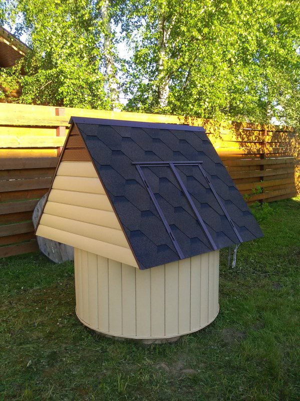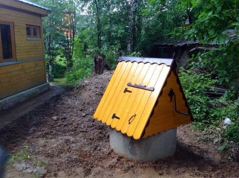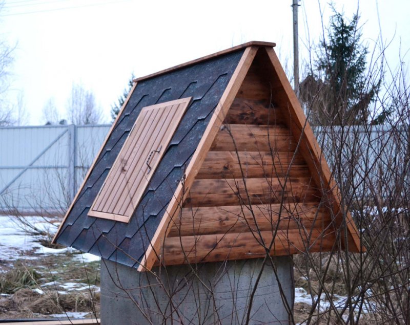 - закрытые – строение выполняется в виде полноценного домика, снабженного дверцей в крыше. При необходимости сооружение можно утеплить пенополистиролом, что позволит предотвратить замерзание воды в колодце в зимнее время;