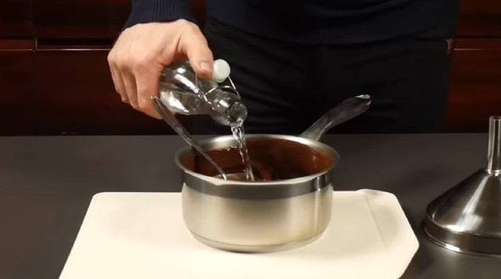 3. Полностью остудите шоколадную пасту. Затем влейте спирт или водку, перемешайте.