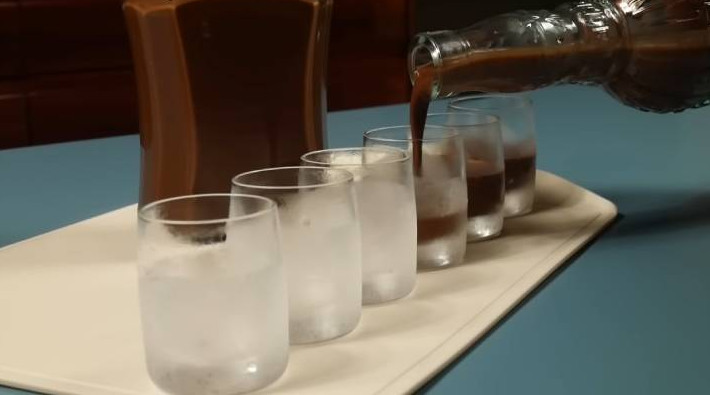 Разливать ликёр только по ледяным рюмкам. Он получается в меру густой, ароматный, очень шоколадный.