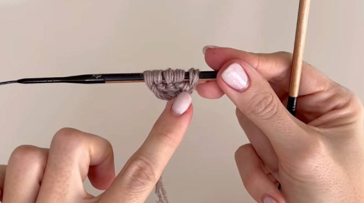 С помощью крючка соедините все три петли в одну соединительным столбиком. Обрежьте нить и спрячьте в вязании.