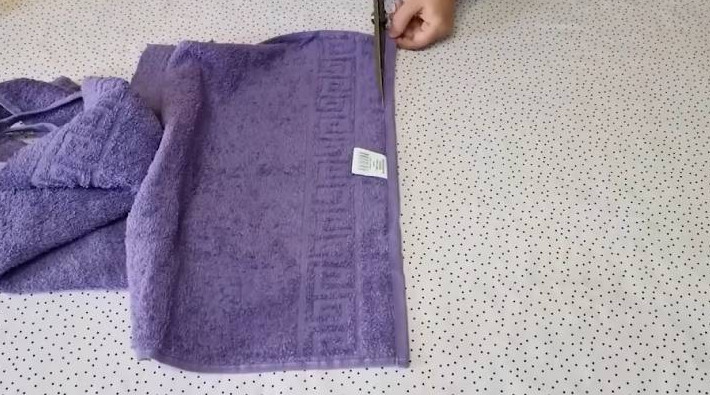 Возьмите полотенце 50*90 см, разрежьте напополам. С обеих сторон срежьте кромку.