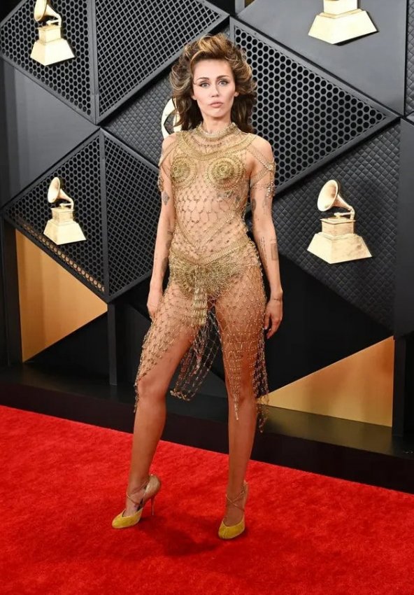 Майли Сайрус ошеломила прозрачным золотым платьем на церемонии вручения премии «Грэмми-2024» - «Своими руками»