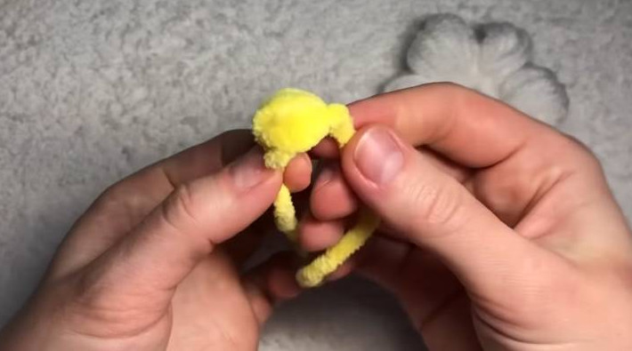 Провяжите все петли вместе, затяните. Обрежьте нить немного с запасом, уберите крючок, затяните последнюю петлю. Получилась сердцевина с двумя нитками.