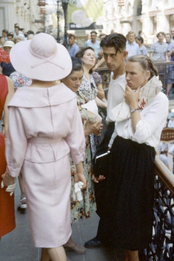 Эмоциональную реакцию советских граждан на вид заморских красоток в стильной одежде можно даже не комментировать. Это был настоящий эстетический шок, зафиксированный камерой фотографа Сочарека, чьи снимки запечатлели потрясенные выражения лиц.