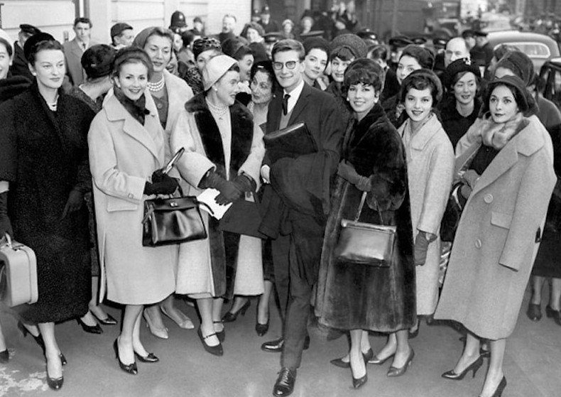 Ив Сен-Лоран в окружении моделей Dior, 1959 г.