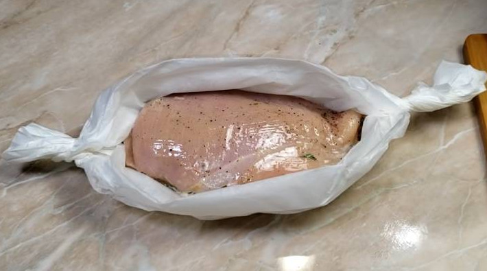 Подайте родным и близким новое блюдо вместо надоевшего мясного рулета. Это аппетитные лодочки из куриного филе с сочной начинкой. Блюдо вполне может сойти за праздничное, хотя готовится на раз-два! Вкусное, ароматное, сытное — улетит первым со стола. Попробуйте приготовить куриные лодочки с начинкой! Аппетитная Кухня/youtube Ингредиенты: куриное филе — 2-3 шт.; пучок петрушки; чеснок — 2-3 зубчика; французская горчица — 1 ст. л.; сметана — 1 ст. л.; твёрдый сыр— 50-70 г; помидор — 1 шт.; перец по вкусу. Лодочки из курицы Для начала подготовьте начинку. К горчице и сметане добавьте сыр, измельчённую зелень с чесноком, перемешайте. Куриное филе надрежьте пополам, но не до конца. Его нужно раскрыть, поперчить и посолить. Аппетитная Кухня/youtube Филе с начинкой Выложите на половинку раскрытого филе 1 ст. л. начинки. Закройте грудку обратно. Аппетитная Кухня/youtube Смажьте с одной стороны растительным маслом. Повторите так с другими кусками филе. Положите каждое фаршированное филе на кусок бумаги для выпечки. Края заверните, как у конфетки. Аппетитная Кухня/youtube Присыпьте слегка сыром. Нарежьте помидор полукольцами, выложите сверху. Снова присыпьте сыром. Аппетитная Кухня/youtube Выпекайте в духовке при температуре 200 градусов в течение 35-40 минут. Ориентируйтесь на особенности своей духовки. Аппетитная Кухня/youtube Готовое филе получается особенно сочным и невероятно ароматным! На запах сбежится вся семья. Блюдо можно подать и на ужин, и на праздничный стол! Непременно попробуйте приготовить.