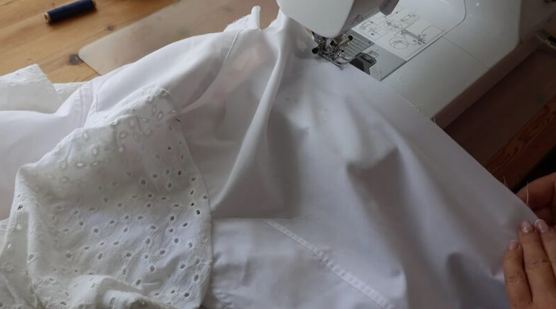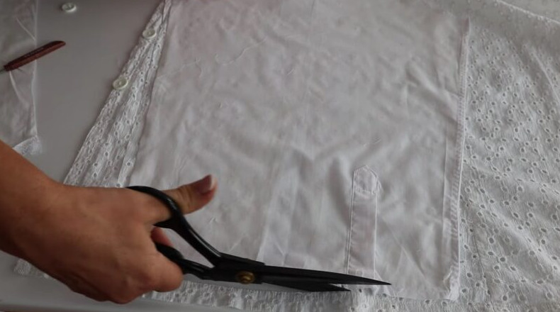 Отпорите рукава и манжеты рубашки. Выкроите аналогичные детали из прошвы.