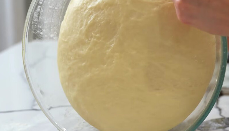 Готовое тесто обомните несколько минут и разделите на 4 равных части. Из каждой части сформуйте шарик. Перед дальнейшей работой тесто должно «отдохнуть» 15-20 минут.