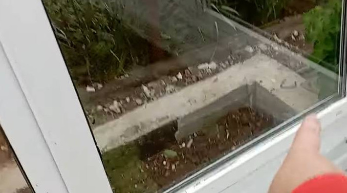 Поверх бетонных плит установили каркас — короб, собранный из брусков 5*15. На него установили оконные рамы, зафиксировали саморезами (перфоратором).