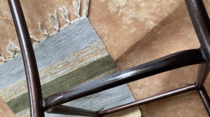 Сначала разберите стул на составные детали. Снимите мягкие детали с каркаса. Удалите старую обшивку. С металлического каркаса необходимо снять старую краску. Для этого воспользуйтесь крупнозернистой наждачной бумагой. После этого покрасьте в новый цвет.