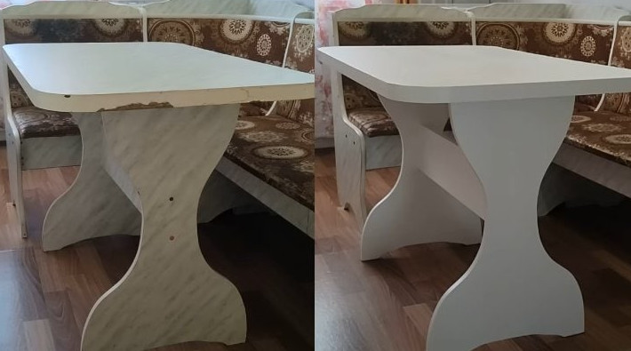 Бережливые хозяева стараются не выбрасывать вещи зря, а с любовью переделать их. Тогда и интерьер посвежеет, и семейный бюджет сохранится! Посмотрите, как старенький, но всё ещё крепкий кухонный стол был обновлён заботливыми руками хозяюшки. Получилось весьма достойно! Вдохновляйтесь идеей и процессом, а после — приступайте к собственным переделкам. Я не Золушка/youtube Реставрация старого стола Для начала со старого стола нужно снять кромку, если она пришла в негодность. Для того чтобы это было легче сделать, проутюжьте её через бумагу. Клей размягчится, и удалить её будет легко! Подденьте кромку ножом и снимите. Я не Золушка/youtube Все сколы, трещинки и иные неровности закройте шпатлёвкой. После полного высыхания выровняйте поверхность наждачной бумагой. Я не Золушка/youtube Финальные штрихи Хорошенько обезжирьте стол со всех сторон перед покраской. Подберите краску желаемого оттенка и с помощью валика кисти нанесите на поверхность. Я не Золушка/youtube После полного высыхания краску можно зафиксировать лаком/жидким стеклом. Также закройте торцы с помощью новой кромки. Приклеивайте её так же, как и снимали — с помощью утюга! Я не Золушка/youtube Оцените результат работы. На наглядном фото «До» и «После» ниже отлично видна разница! Я не Золушка/youtube Вместо того чтобы выбросить, мастерица своими руками обновила старый кухонный стол. Теперь он прослужит ей ещё немало лет!