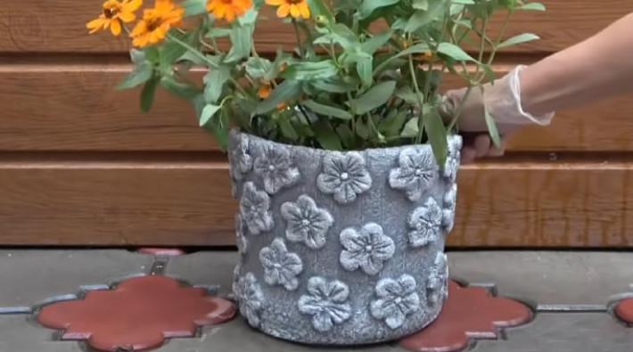 Оцените нестандартный подход к бросовым вещам! Ненужное пластиковое ведёрко, оставшееся после краски, например, можно использовать повторно на своём участке. Просто разведите цемент с песком водой и преобразите его! Бюджетный и невероятно удачный проект из ничего. Блестящий результат гарантирован! Master_Sergeich/youtube Материалы: пластиковое ведёрко; ткань; цемент; песок; форма для печенья; клей ПВА; акриловая краска; лак. Подготовка пластика На дне ведёрка сделайте дренажные отверстия. Обрежьте ободок, уберите крышку и этикетку. Разведите цемент водой до жидкого состояния, замочите тряпку. Оберните ею ведёрко со всех сторон. Сверху смажьте более густым раствором цемента. Оставьте на сутки. Master_Sergeich/youtube Декор ведёрка Соедините песок с цементом в соотношении 1:1 (по 200 г). Разведите водой до густой консистенции (100 мл). Добавьте 1 ст. л. клея ПВА. Переложите на рабочую поверхность, раскатайте, как тесто. С помощью формы для печенья вырежьте декор. Это могут быть сердечки, звёзды, цветы и т. д. Master_Sergeich/youtube На подготовленное ведёрко выложите декор. Приклеивайте на клей ПВА сначала с одной стороны, затем, через 2 часа, переверните и дополните другую. Master_Sergeich/youtube После полного высыхания и затвердевания покрасьте готовое изделие. Сухой кистью нанесите белую краску, чтобы оттенить декор. Master_Sergeich/youtube Только взгляните на это чудо! Красивейший вазон, а когда-то это было обыкновенное пластиковое ведро. Master_Sergeich/youtube Преображение с помощью обыкновенного бетона! Очень удачная и бюджетная идея. То, что нужно для участка!