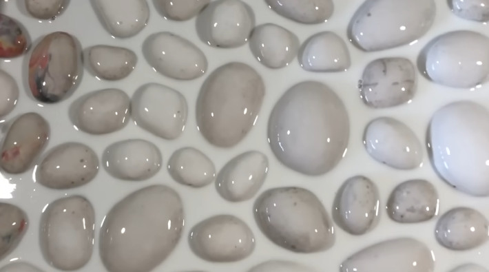 Не торопитесь тратить деньги на дорогую керамическую плитку. Если есть свободное время, силы и желание, то пол в ванной можно сделать иначе! Мастерица предлагает оригинальную идею — выкладка гальки вместо плитки. Камушки, кстати, тоже не настоящие, а сделанные из бетона. Стильный ремонт в ванной за сущие копейки!