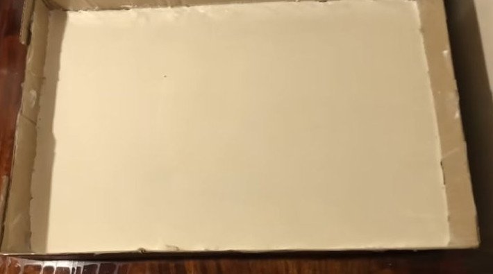 Чтобы выровнять поверхность будущей формы, залейте её сверху гипсом, разведённым водой. Оставьте до высыхания.
