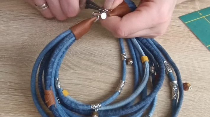 Почти у каждого человека в шкафу найдётся пара джинсов, которые он больше не носит по разным причинам. Чтобы ненужная одежда не копилась и не собирала пыль, перешейте её в новый, стильный аксессуар! Это шикарнейшее колье, которое можно носить хоть каждый день с разными образами. Сшить элементарно просто! Даже если вы только начинающая мастерица, у вас всё получится в лучшем виде. Немного импровизации, и модный аксессуар будет готов!
