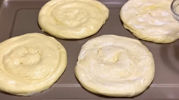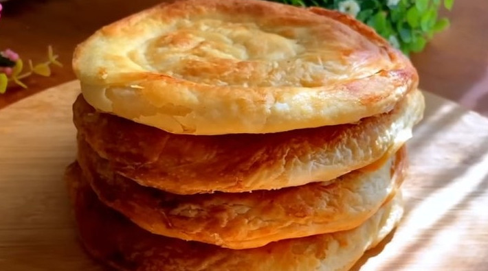 Приготовьте вкуснейшие лепёшки из минимума ингредиентов. Нужна только мука, манка и кипяток! Никаких яиц, молока и дрожжей. Лепёшки получаются слоёными и удивительно вкусными — невозможно остановиться на одной штуке! Отличная замена покупного хлеба. przepisy od gali/youtube Ингредиенты: 280 мл кипятка; 1 ч. л. соли; 100 г манки; 500 г муки; 100 мл масла (или пополам масло маргарин); 1 банка любого йогурта. Тесто из муки и манки В кипяток добавьте соль, размешайте. Всыпьте манку и муку. Руками замесите мягкое тесто. Прикройте полотенцем, оставьте на 10 минут. Разделите на 4 части. Каждую скатайте в шар. Смажьте растительным маслом (или пополам масло маргарин). Оставьте ещё на 10 минут. przepisy od gali/youtube Слоёные лепёшки Возьмите 1 кусочек теста. Пальцами расплющьте. Теперь начните вытягивать, стараясь не порвать. Добавьте ещё масла. Когда тесто достаточно тонко растянуто, скатайте в рулет. przepisy od gali/youtube А его, в свою очередь, сверните улиткой. Повторите то же самое с остальными кусочками теста. przepisy od gali/youtube Ещё через 5-10 минут переложите улитки на противень с пергаментной бумагой. Пальцами немного расплющьте. Сверху смажьте йогуртом. przepisy od gali/youtube Отправьте в духовку, разогретую до 180 градусов, на 20 минут. Получаются очень аппетитные, поджаристые, слоёные лепёшки! przepisy od gali/youtube В составе даже нет дрожжей и соды — только мука, манка и кипяток. Это очень вкусная и необычная замена магазинному хлебу.