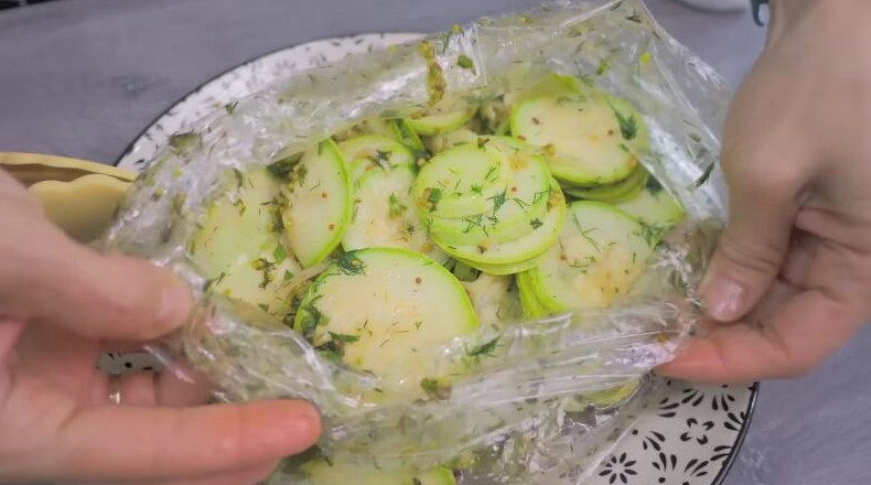 Летнее меню невозможно представить без вкусных и полезных кабачков, из которых можно приготовить огромное количество блюд для всей семьи. Если вы находитесь в поиске нового и оригинального блюда из кабачков для своей кулинарной книги, обязательно попробуйте эту хрустящую и ароматную закуску, на приготовление которой уйдет не более 10 минут. Все, что нужно: нарезать, сложить и перемешать, никакой термической обработки! ВКУСНО и ПОЛЕЗНО/youtube Необходимые ингредиенты: кабачки молодые — 3 шт (700 гр); лук репчатый — 1 шт (80-100 гр); укроп (или любая зелень) — 15-20 гр; чеснок — 2 зубчика; соль — 1 ч.л; сахар — 0,5 ч.л; горчица дижонская — 1 ст.л; уксус яблочный — 3 ст.л; перец чёрный молотый по вкусу; перец красный жгучий 0,3 ч.л. Процесс приготовления Нарежьте кабачки тонкими кружочками: чем тоньше будет нарезка, тем вкуснее получится закуска. ВКУСНО и ПОЛЕЗНО/youtube Нарежьте лук тонкими кольцами, измельчите укроп. В пакет или в пластиковый контейнер выложите подготовленные ингредиенты. Добавьте соль, перец, горчицу, специи, яблочный уксус и чеснок. ВКУСНО и ПОЛЕЗНО/youtube Тщательно перемешайте ингредиенты, чтобы маринад равномерно распределился по всей поверхности кабачков. Положите кабачки в холодильник на 15-20 минут и подавайте летнюю закуску к столу! ВКУСНО и ПОЛЕЗНО/youtube