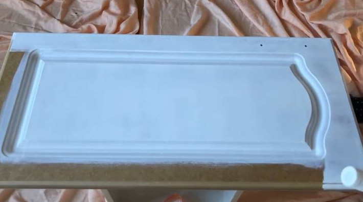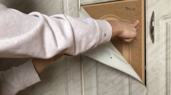 Снимите ручки и старую плёнку, если она имеется. Сделать это просто, если слегка нагреть её феном.
