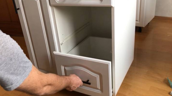 Соберите кухонный гарнитур обратно. Прикрепите новые ручки, если это требуется.