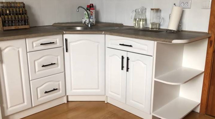 Обновить кухню своими руками — это не такая сложная задача, как может показаться на первый взгляд! Конечно, это требует некоторых усилий. Однако если всё сделать самостоятельно, то получится прилично сэкономить. К тому же, не придётся покупать новую мебель, если нынешняя ещё в хорошем состоянии, просто нуждается в небольшом обновлении. Возьмите пару банок краски и приступайте к творческой работе! Свежий интерьер кухни, который не «съест» семейный бюджет! DIYsiki/youtube Подготовка кухни к ремонту Снимите ручки и старую плёнку, если она имеется. Сделать это просто, если слегка нагреть её феном. DIYsiki/youtube Грунтовка и краска Раскрутите гарнитур, снимите с петель, разложите на небольшой возвышенности. Зашкурьте наждачной бумагой и прогрунтуйте. DIYsiki/youtube После высыхания грунтовки нанесите краску (эмаль) в несколько слоёв. Учитывайте поэтапность процесса и промежуточную просушку, о чём будет указано в инструкции на банке краски. DIYsiki/youtube Обновление столешницы Старую столешницу тоже можно обновить на бюджете! Для этого обезжирьте её. Для преображения вам понадобится самоклеящаяся плёнка. Отрежьте необходимый кусок и приклейте, медленно разглаживая! DIYsiki/youtube Сборка и новый вид кухни Соберите кухонный гарнитур обратно. Прикрепите новые ручки, если это требуется. DIYsiki/youtube Оцените результат! Кухня заиграла новыми красками, посвежела, преобразилась. И всё это реально сделать своими руками! DIYsiki/youtube Шикарное преображение кухни на бюджете! И не пришлось покупать новую мебель. Не бойтесь затевать косметический ремонт, ведь результат того стоит!