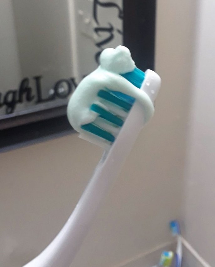 Зубная паста, которая похожа на обезьянку, держащую зубную щетку