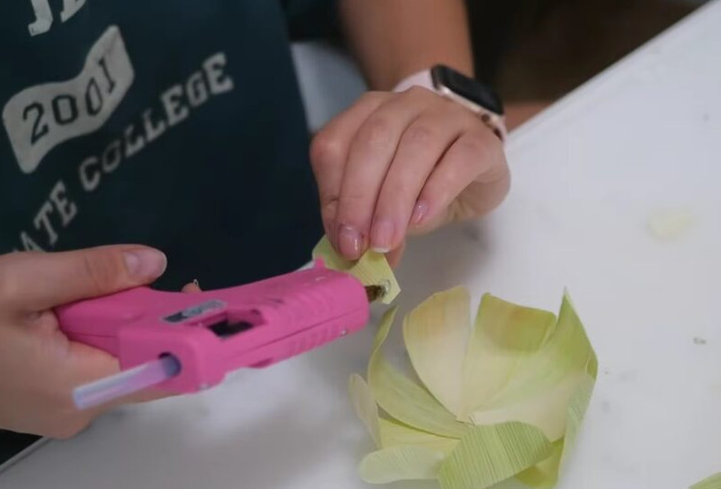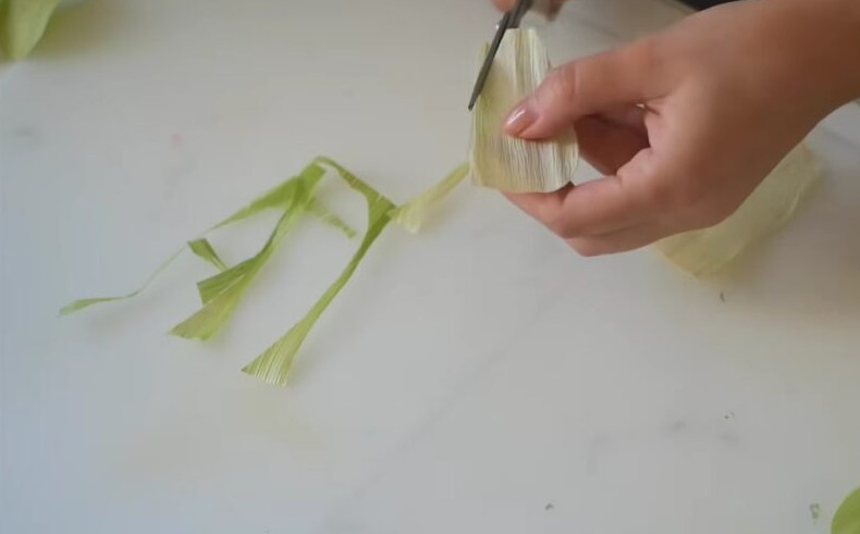 Подсушите шелуху от початков кукурузы под солнечными лучами так, чтобы она оставалась слегка влажной. Процесс сушки займет ориентировочно час. Каждый листочек выпрямите, используя утюжок для волос.