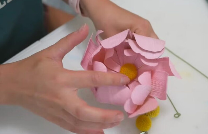 Приклеивайте лепестки до тех пор, пока цветок не приобретет желаемую форму и объем.