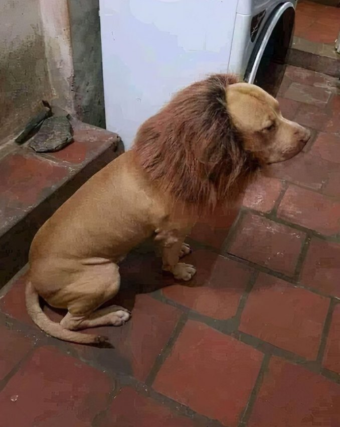 «Это парик для собак, который можно купить в Интернете. Я купил один для своей собаки. Он тоже это ненавидит.»
