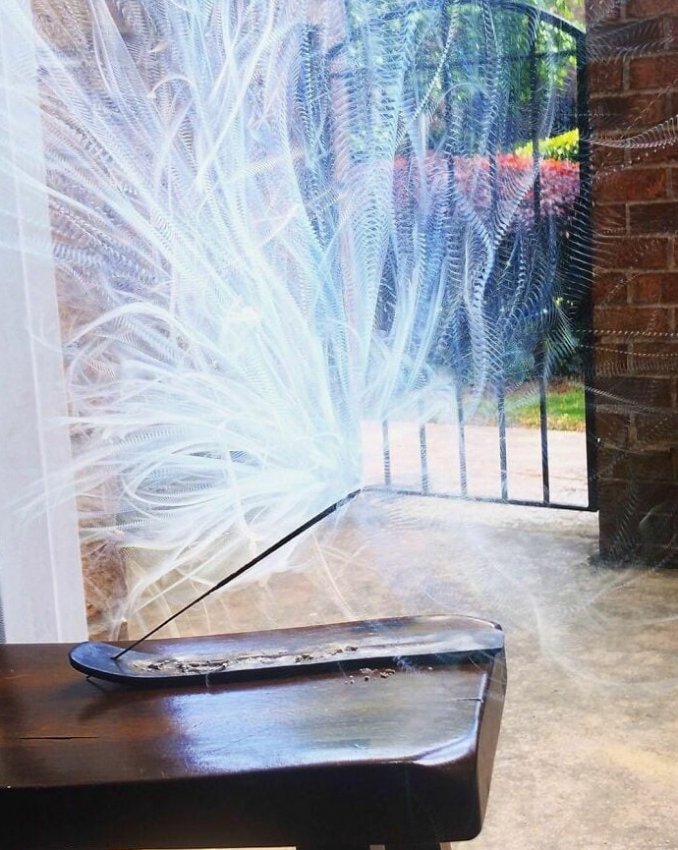 Благовония на веранде, заснятые на фотоаппарат с выдержкой