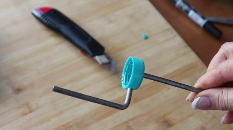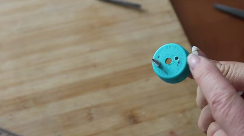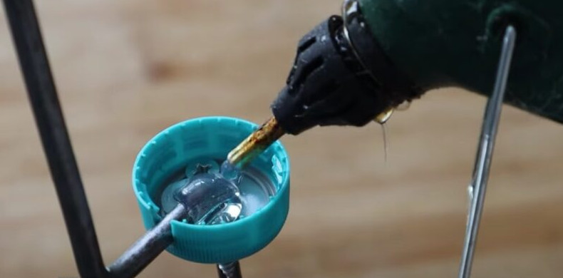 Наденьте крышку на прут, внутрь залейте горячий клей, который поможет зафиксировать все детали.