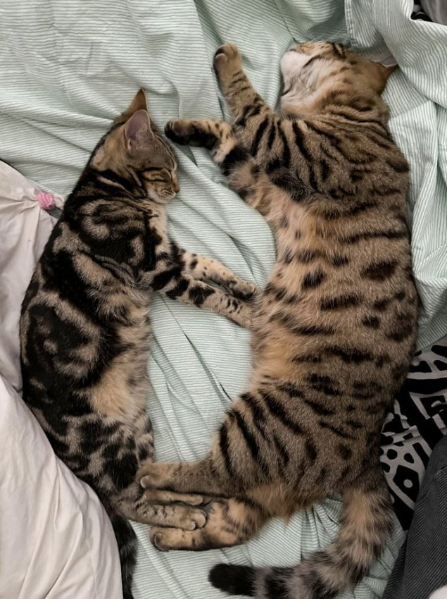 Интересный факт: они могут быть из одного помета, но иметь разных отцов! Кошки могут забеременеть от нескольких разных партнеров одновременно. Таким образом, разница в размерах может происходить из-за разных генофондов.