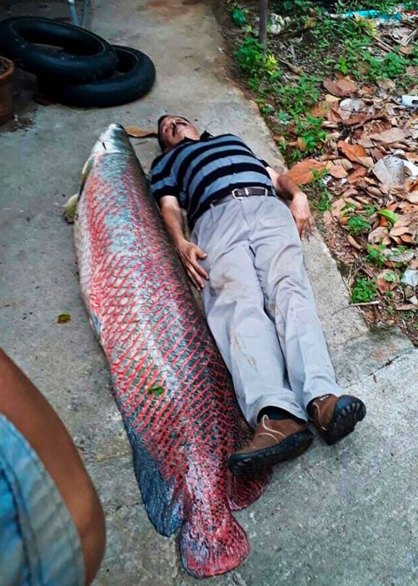 «Сегодня я поймал арапайму, одну из крупнейших пресноводных рыб»