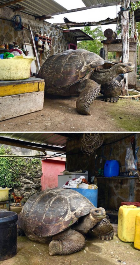 «Представьте, что вы возвращаетесь домой, а ваше парковочное место занято огромной галапагосской гигантской черепахой. Если вы живете в высокогорных районах Галапагосских островов, такое положение дел для вас не редкость! В сухой сезон черепахи часто ищут воду, и их поиски приводят их вблизи населенных пунктов»