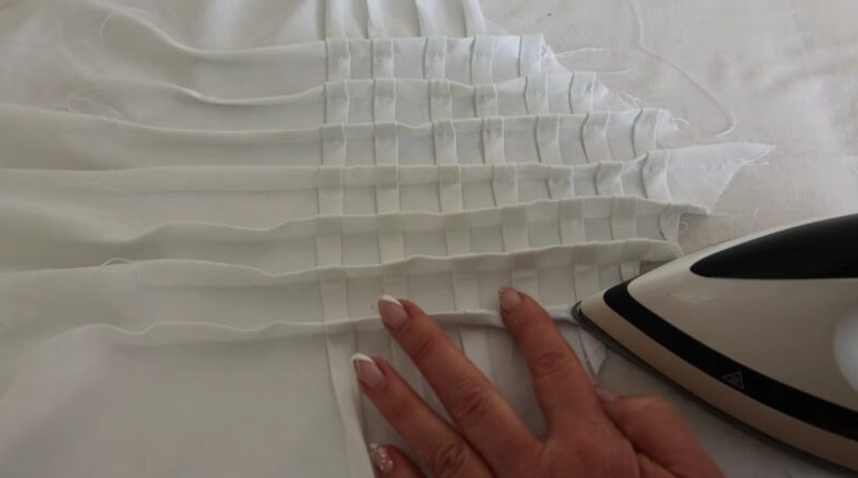 Проложите фиксирующие строчки. Разутюжьте ткань и проделайте аналогичную процедуру по другой диагонали.