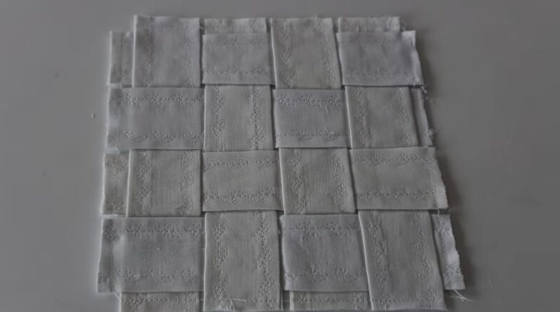 Переплетите полосы между собой и соедините их на швейной машине.