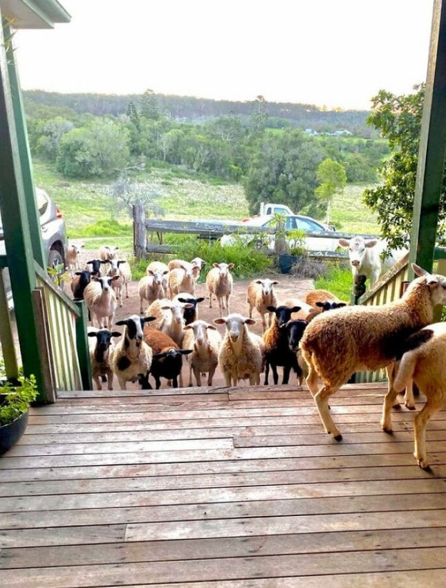 «Парень моей дочери помогал на ферме своих родителей в Кингарое, Квинсленд. Он сделал этот снимок, когда овцы подошли поздороваться»