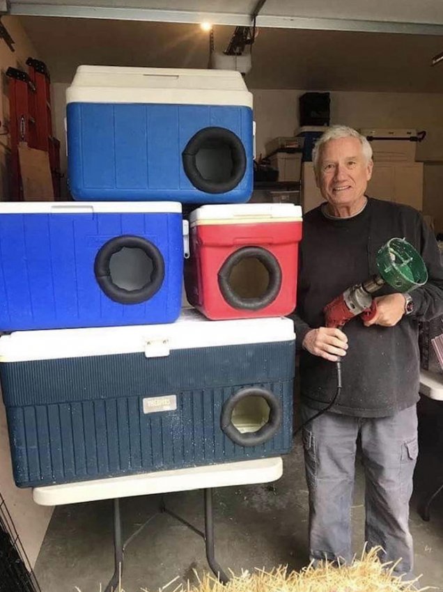 «Этот человек перерабатывает старые контейнеры-холодильники для пикников в убежища для бездомных кошек на зиму!»