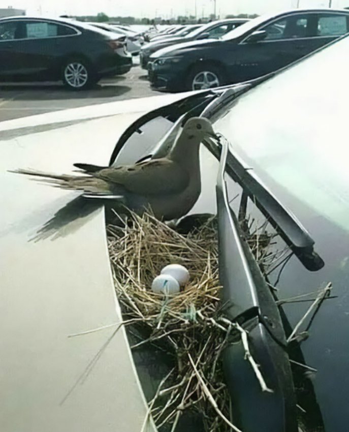 «Владелец этой машины из Дании. Он не заводил машину целый месяц, пока эта голубка не высидела яйца»