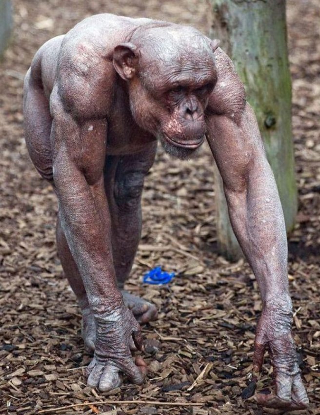 Эта фотография показывает, насколько мускулистыми на самом деле являются эти приматы без их обычного волосяного покрова.
