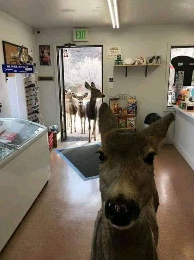 «Олень зашел в магазин в Колорадо. Хозяин магазина дал ей немного печенья»